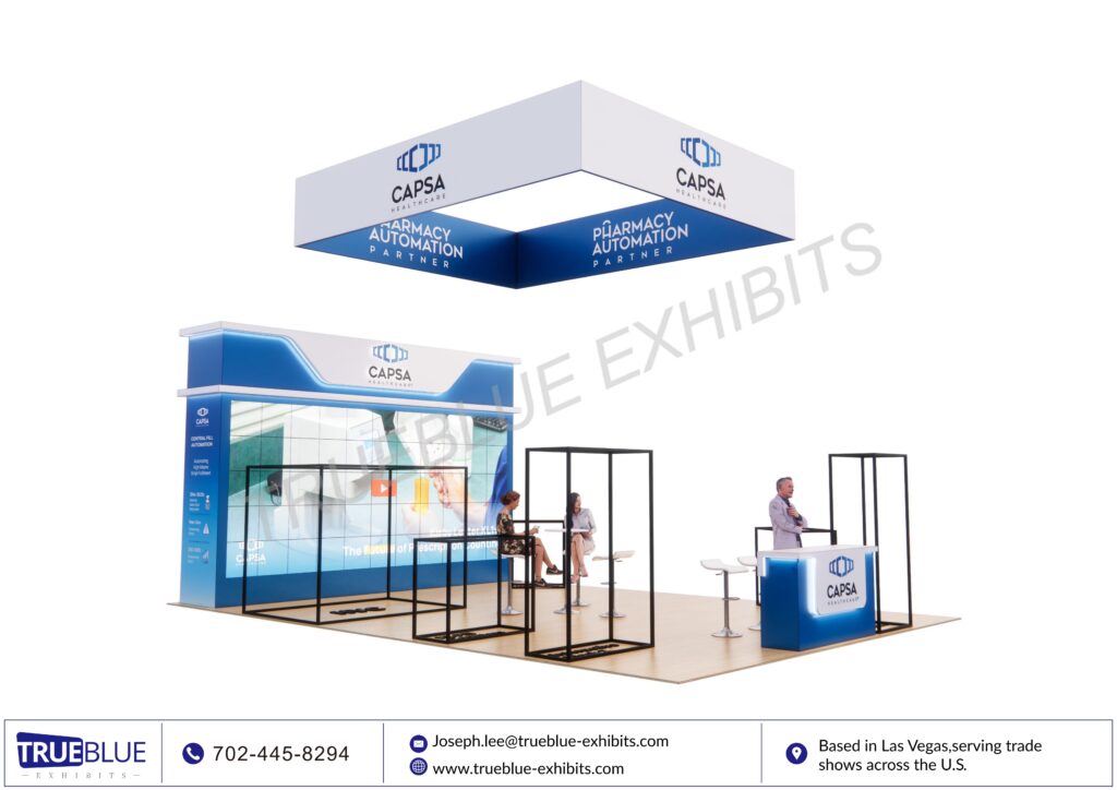 Capsa Healthcare showcased a professional 20’ x 30’ exhibit at the ASHP Midyear Clinical Meeting with a custom booth rental designed and built by TrueBlue Exhibits. This modular exhibit featured clean architectural lines, LED video wall, integrated storage, branded graphics, and efficient meeting space to support high-traffic engagement. Designed to reflect the innovation and reliability of Capsa Healthcare, the booth delivered a polished presence ideal for pharmacy and clinical professionals. TrueBlue Exhibits provided turnkey exhibit rental services including design, fabrication, logistics, installation, dismantle, and on-site support, ensuring a seamless ASHP Midyear trade show experience.