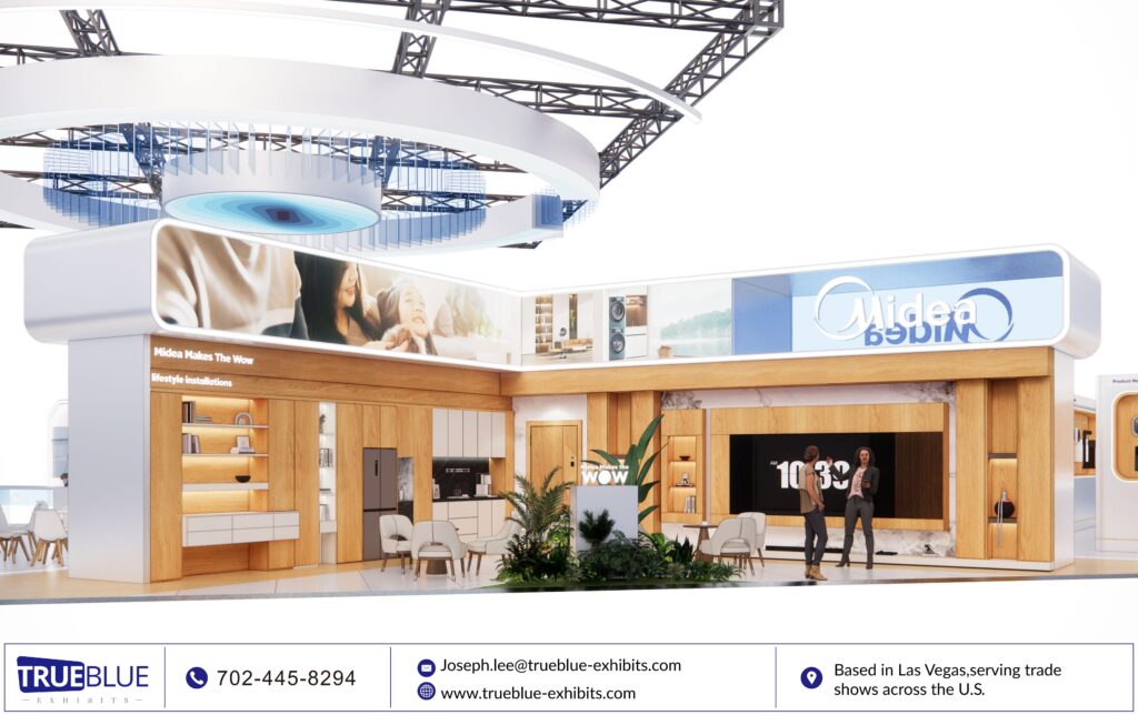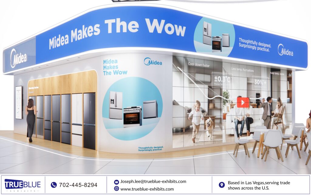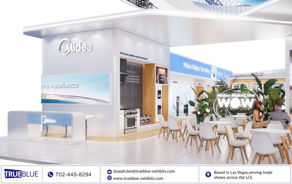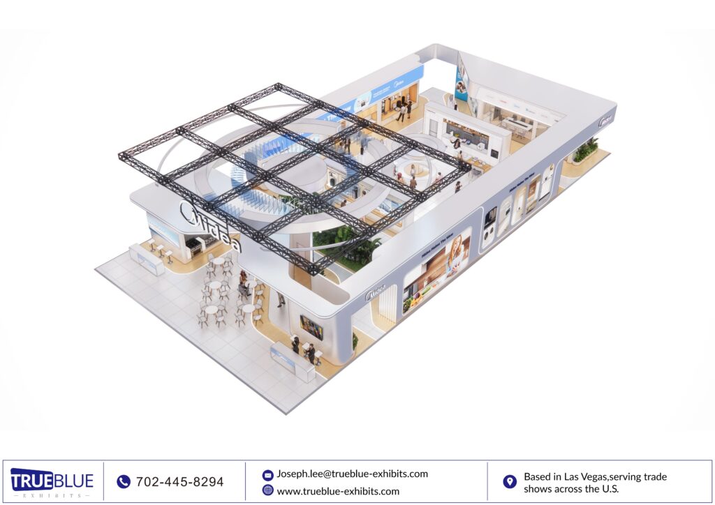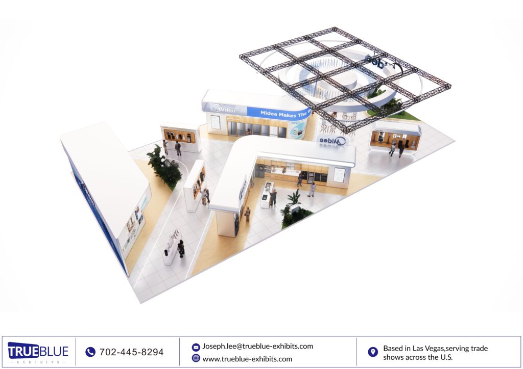 Media KBIS 2026 60′ x 120′ 3D Booth Renderings by TrueBlue Exhibits showcase innovation, precision, and immersive design for the premier kitchen and bath trade show. This massive custom booth highlights TrueBlue Exhibits’ expertise in large-scale trade show environments, featuring detailed 3D renderings with cutting-edge materials, dynamic lighting, and functional zones for product display and media engagement. The 60′ x 120′ layout emphasizes open flow, strong branding visibility, and advanced presentation technology.
