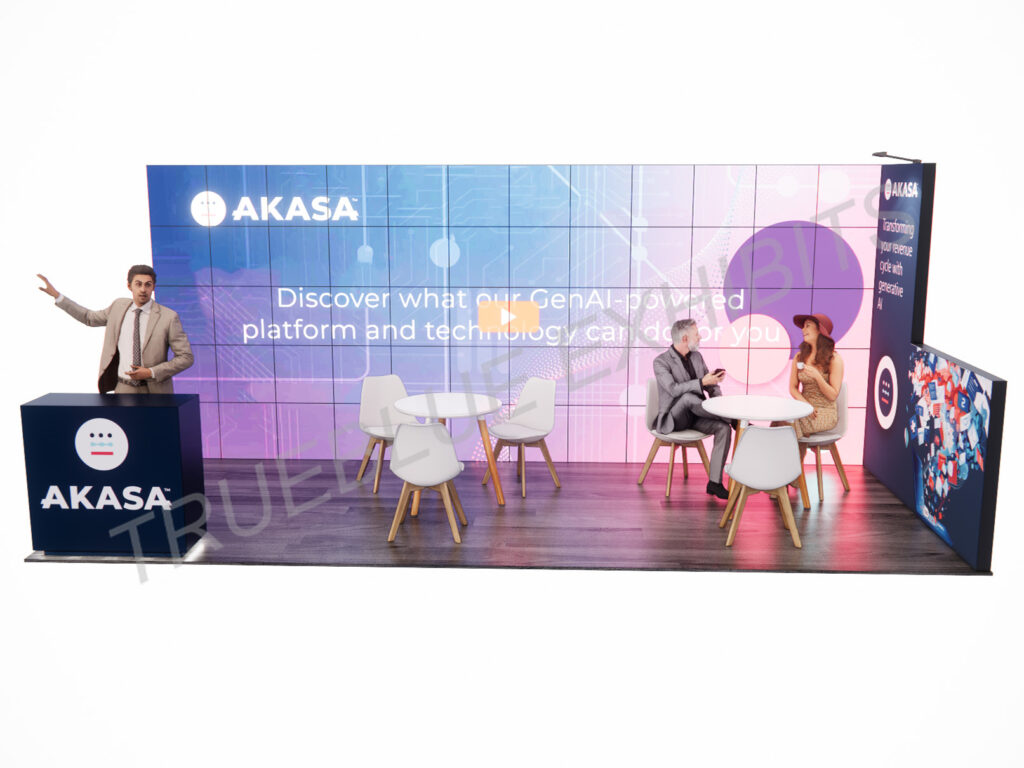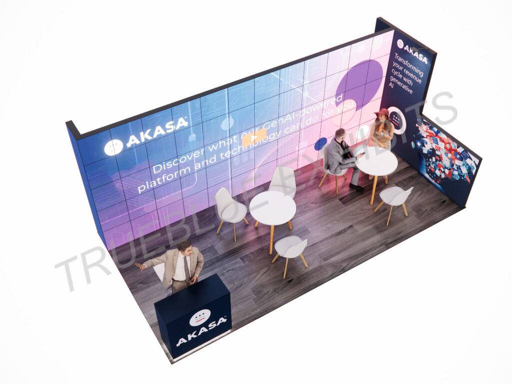 To experience the most hassle-free and seamless trade show booth services, choose TrueBlue Exhibits. We provide trade show booth solutions for Las Vegas and other cities across the US. Our offerings include a wide range of turnkey services like in-house custom booth fabrication, manufacturing, installation, and dismantle. Contact us to learn more about our 10′ x 20′ custom trade show booth designs.
